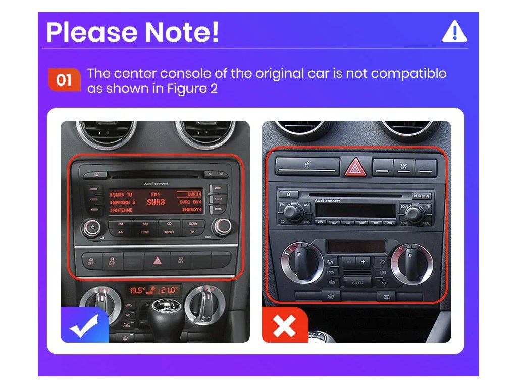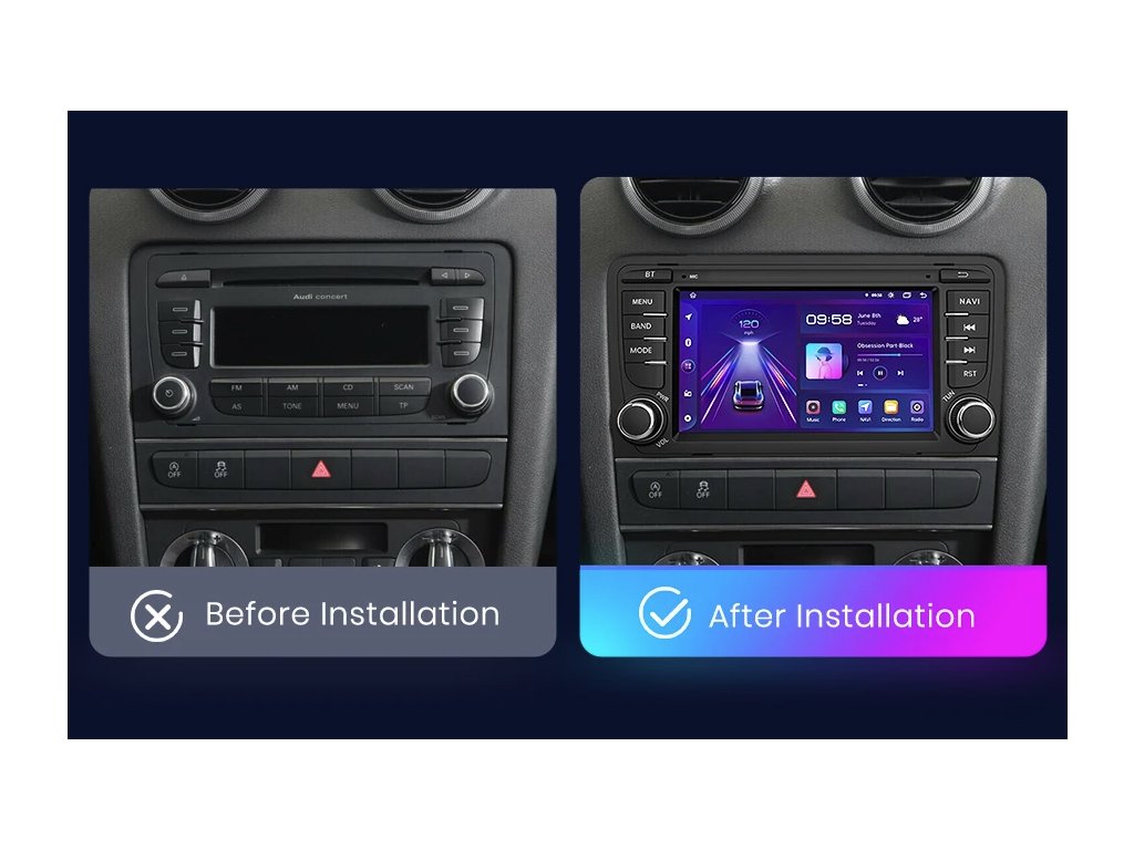 Velmi jednoduchá montáž, autorádio je s rámečkem a veškerou kabeláží pro snadné zapojení pro AUDI A3 8P 2003-2013