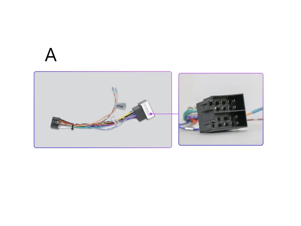 - Napájecí kabel ISO (Varianta A bez CANbusu nebo varianta B s CANbusem),