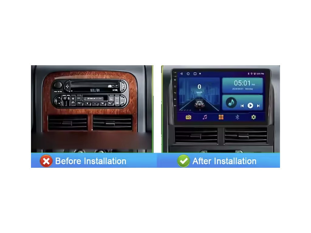 Profesionální montážní sada pro instalaci 9″ 2DIN autorádia určená pro vozy Jeep Grand Cherokee (98-04). Tento rámeček umožní modernizovat originální rádio na multimediální jednotku s velkým dotykovým displejem bez nutnosti rozsáhlých zásahů do palubní desky nebo kabeláže. Díky přesnému tvarování a estetickému provedení panel sluší interiéru vozu a působí jako originální díl.
