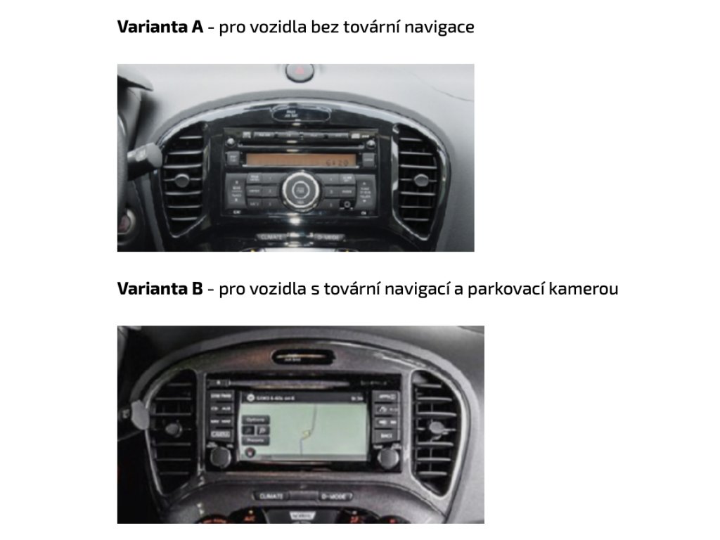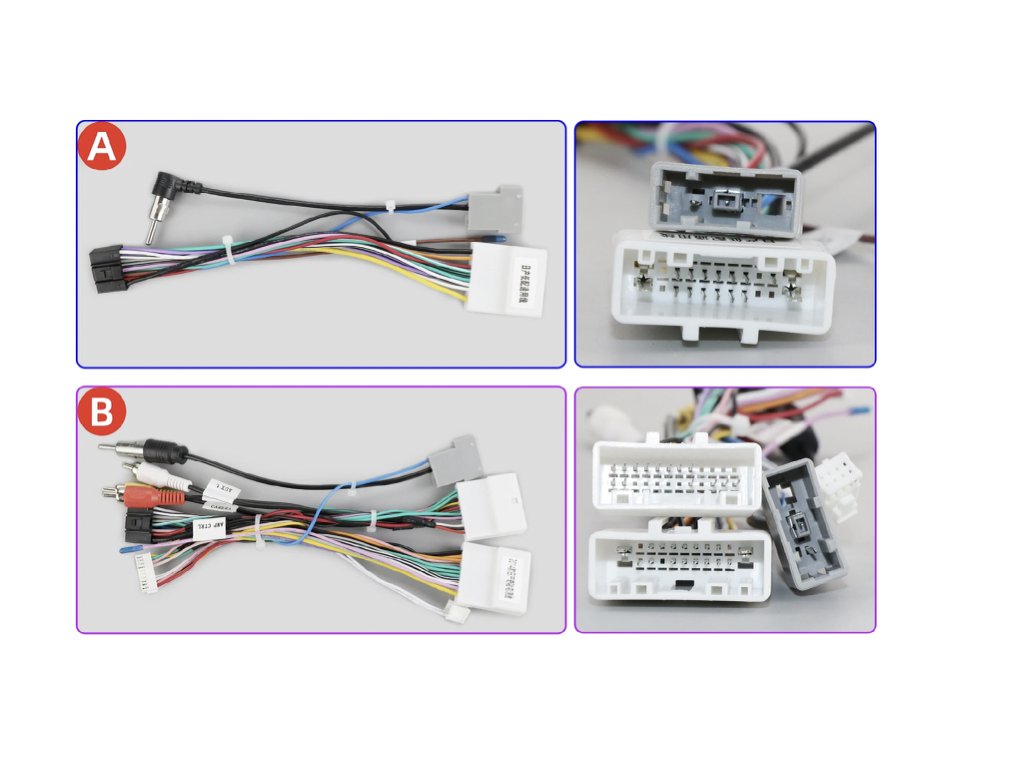 Varianty A a B napájecích kabelů, podle druhu továrního autorádia.