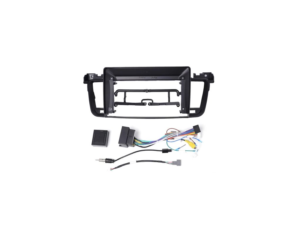 Redukční rámeček 9" s kabeláží pro Peugeot 508 (2011-2018), Fluence umožňuje instalaci 2‑DIN autorádia s velkým displejem. Rámeček je vyroben z černého matného plastu, esteticky zapadá do palubky.