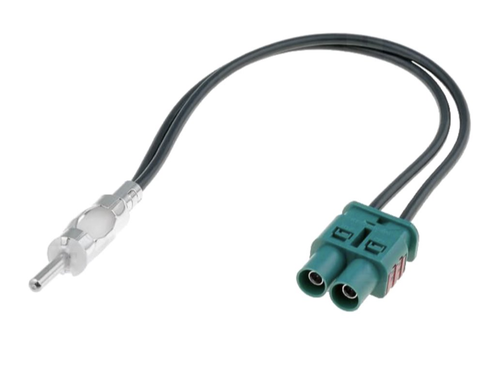 Anténní adaptér a slučovač dvojitá Fakra - DIN je anténní adaptér pro zapojení neoriginálního autorádia s DIN vstupem na dvojitý anténní svod zakončený sloučeným Fakra konektorem.
