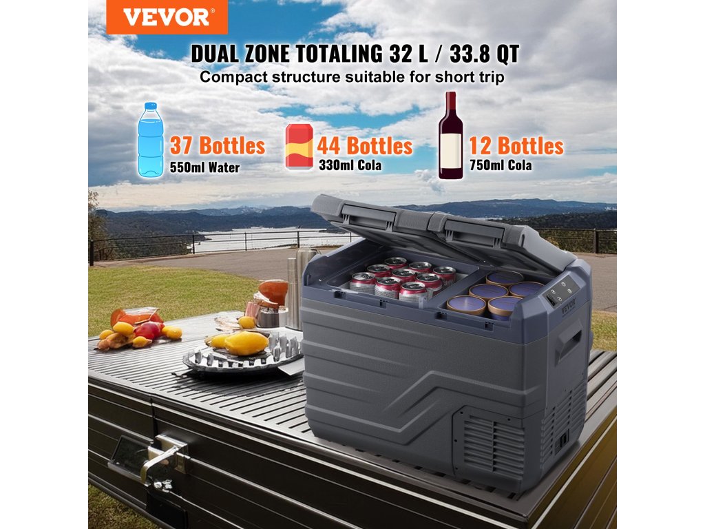 VEVOR Přenosná chladnička do auta Mraznička Kompresor 32 l Dual Zone for Car Home
