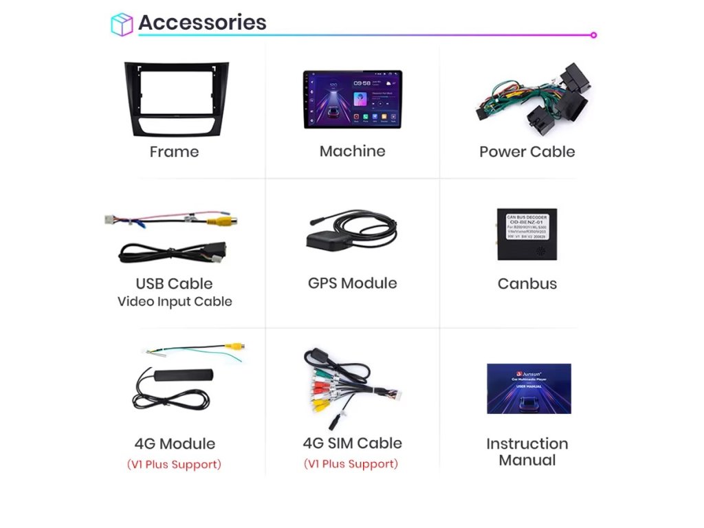 Velmi jednoduchá montáž, autorádio je s rámečkem a veškerou kabeláží pro snadné zapojení pro Benz třídy E W211 2002-2003