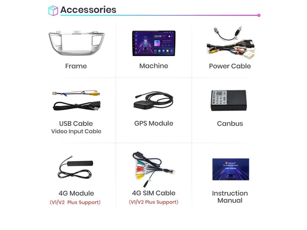 Velmi jednoduchá montáž, autorádio je s rámečkem a veškerou kabeláží pro snadné zapojení pro CarPlay pro Hyundai IX35 Tucson 3 2015-2018