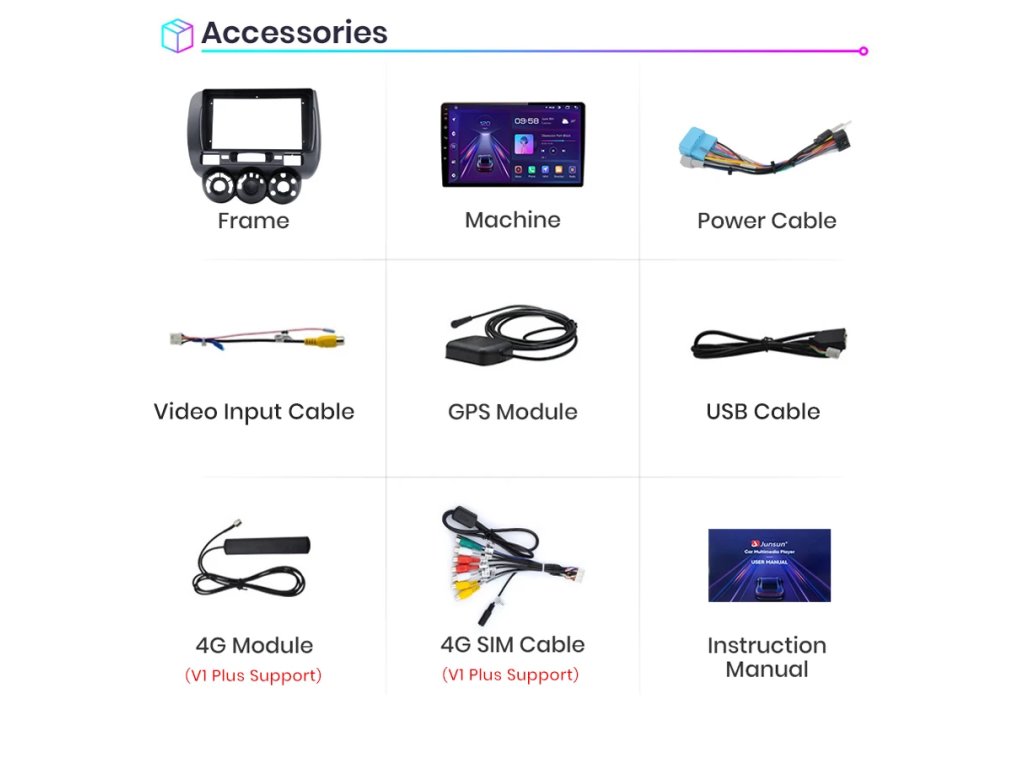 Velmi jednoduchá montáž, autorádio je s rámečkem a veškerou kabeláží pro snadné zapojení pro Honda Fit Jazz City 2002-2007
