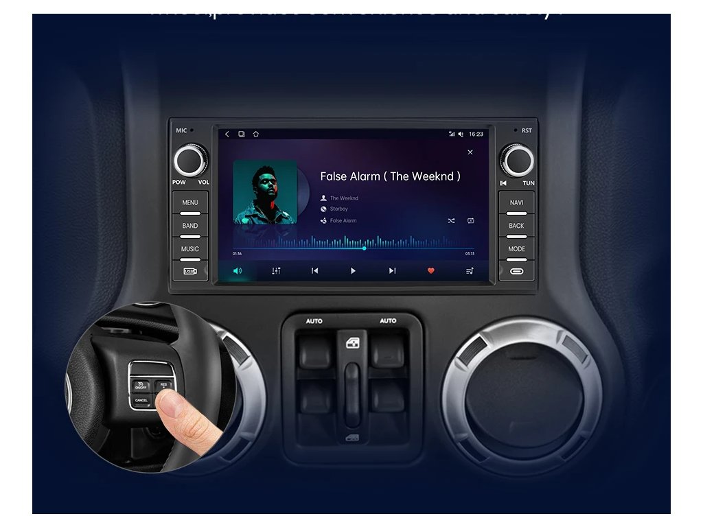 Autorádio pro Jeep Wrangler Dodge Grand Cherokee Chrysler 300C Patriot Commander Caliber Challenger, Android Auto, GPS, WiFi, Bluetooth