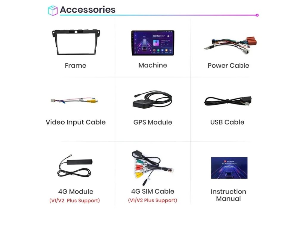 Velmi jednoduchá montáž, autorádio je s rámečkem a veškerou kabeláží pro snadné zapojení pro Mazda CX-7 CX7 2008-2015