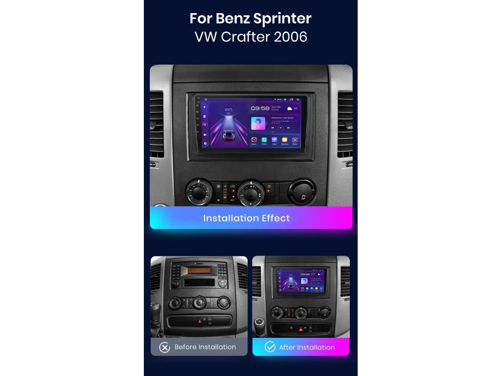 Autorádio pro Mercedes Benz Sprinter Volkswagen Crafter 2006, Android Auto, GPS, WiFi, Bluetooth