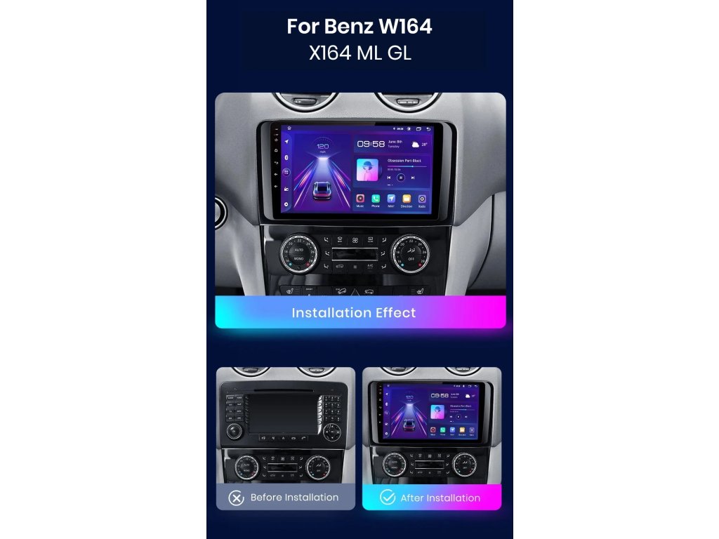 Velmi jednoduchá montáž, autorádio je s rámečkem a veškerou kabeláží pro snadné zapojení pro Mercedes Benz W169 W245 B200 W906 Sprinter W639 Vito