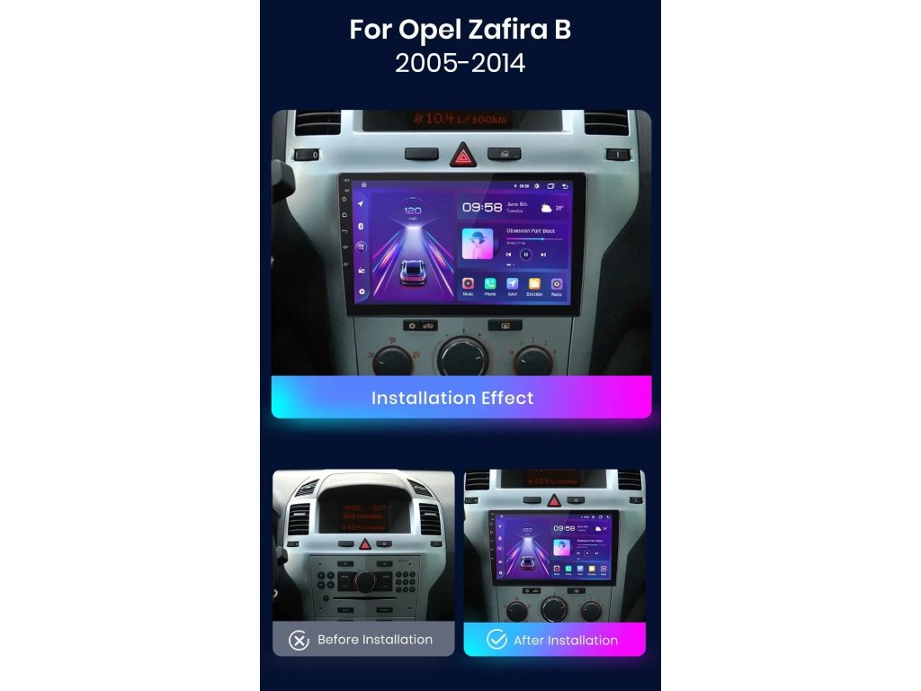 Velmi jednoduchá montáž, autorádio je s rámečkem a veškerou kabeláží pro snadné zapojení pro Opel Zafira B Astra H 2005-2014