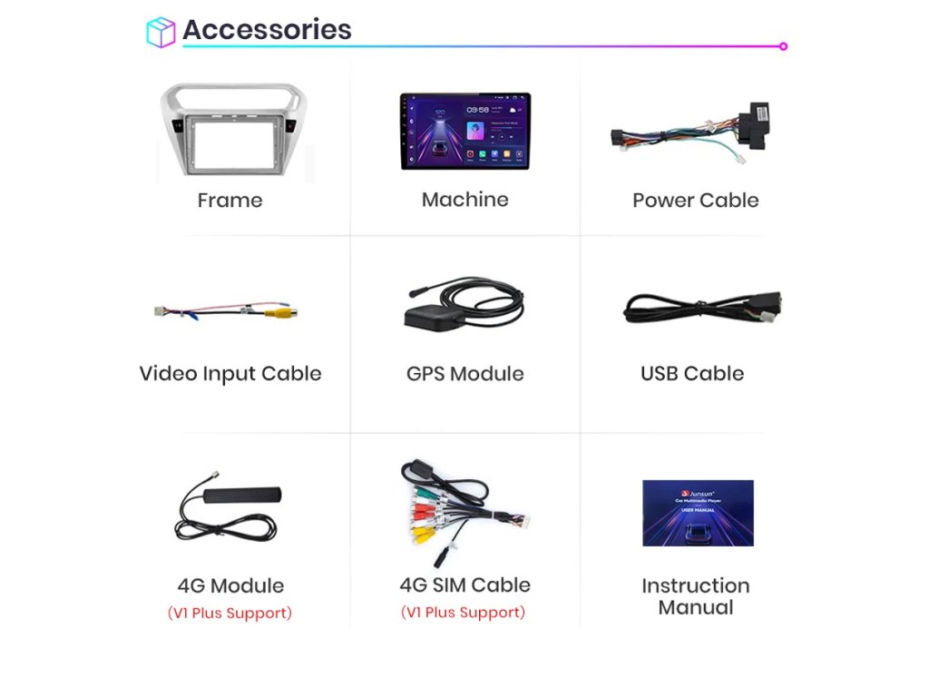 Velmi jednoduchá montáž, autorádio je s rámečkem a veškerou kabeláží pro snadné zapojení pro Peugeot 301, Citroen Elysee 2013-2018