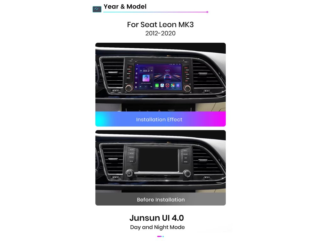 Velmi jednoduchá montáž, autorádio je s rámečkem a veškerou kabeláží pro snadné zapojení pro Seat Leon MK3 5F 2012-2020
