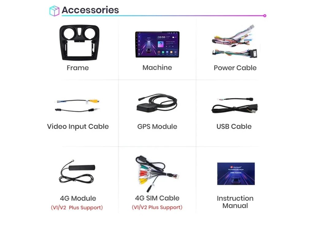 Velmi jednoduchá montáž, autorádio je s rámečkem a veškerou kabeláží pro snadné zapojení pro Renault Logan 2 Sandero 2014-2019
