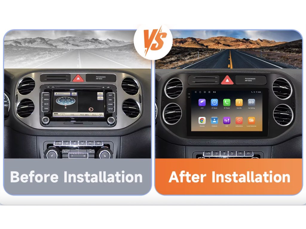 Velmi jednoduchá montáž, autorádio je s rámečkem a veškerou kabeláží pro snadné zapojení pro Volkswagen Tiguan 1 NF 2006-2016 a Golf plus. Oba rámečky pro různé typy výstražného trojúhelníku jsou v balení